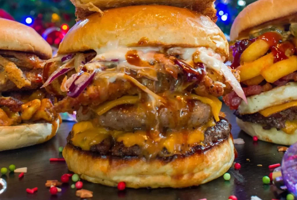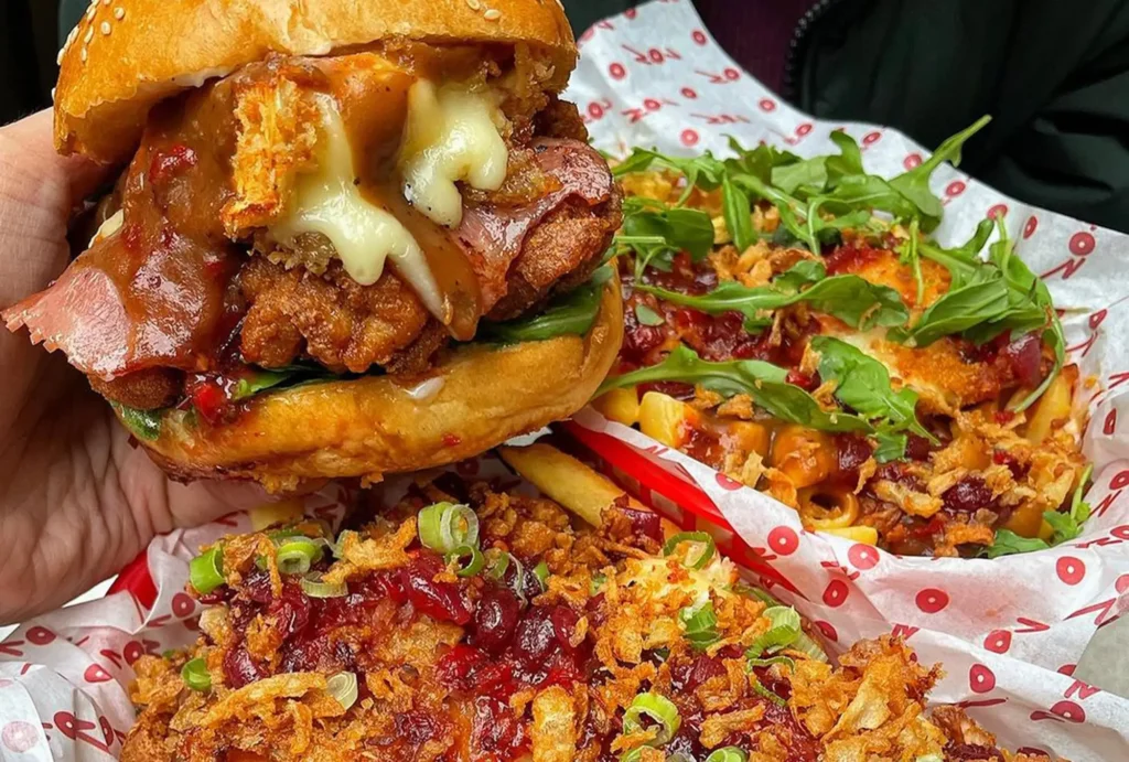 We couldn’t have a list of festive food, without including the pioneer of gimmick burgers in Almost Famous. It’s Son of a Nutcracker burger is up there with some of the biggest burgers we’ve ever seen. It includes, and brace yourself for a long list, a cheeseburger, spiced sausage patty, melty cheese, buttermilk fried chicken, AFC gravy, Christmas slaw, bacon jam, sweet spices BBQ sauce, bacon ketchup, brandy buttered pepper mayo, topped with a cheddar jalapeno and chorizo sausage roll, a pig in blanket all served with a pot of dipping AFC gravy. Some elements are Christmassy, others not so much, but it looks Christmassy so it’s on the list, good luck getting your mouth around this one.