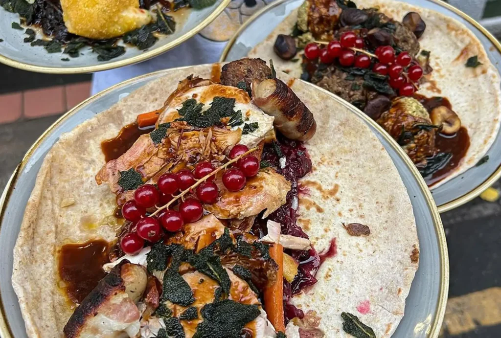 Yard and Coop is stepping up its Christmas offering this year with a stall at the Manchester Christmas Markets and is in our list of must visit stalls. Don’t worry, they’re still frying up fried chicken in the Northern Quarter, and our pick from the festive menu is Christmas Wrappin. A Yorkshire pudding burrito stuffed with buttermilk fried chicken, creamed cheesy sprouts, cranberry hot sauce and stuffing balls. Served up with a pot of chicken gravy for dunking.
